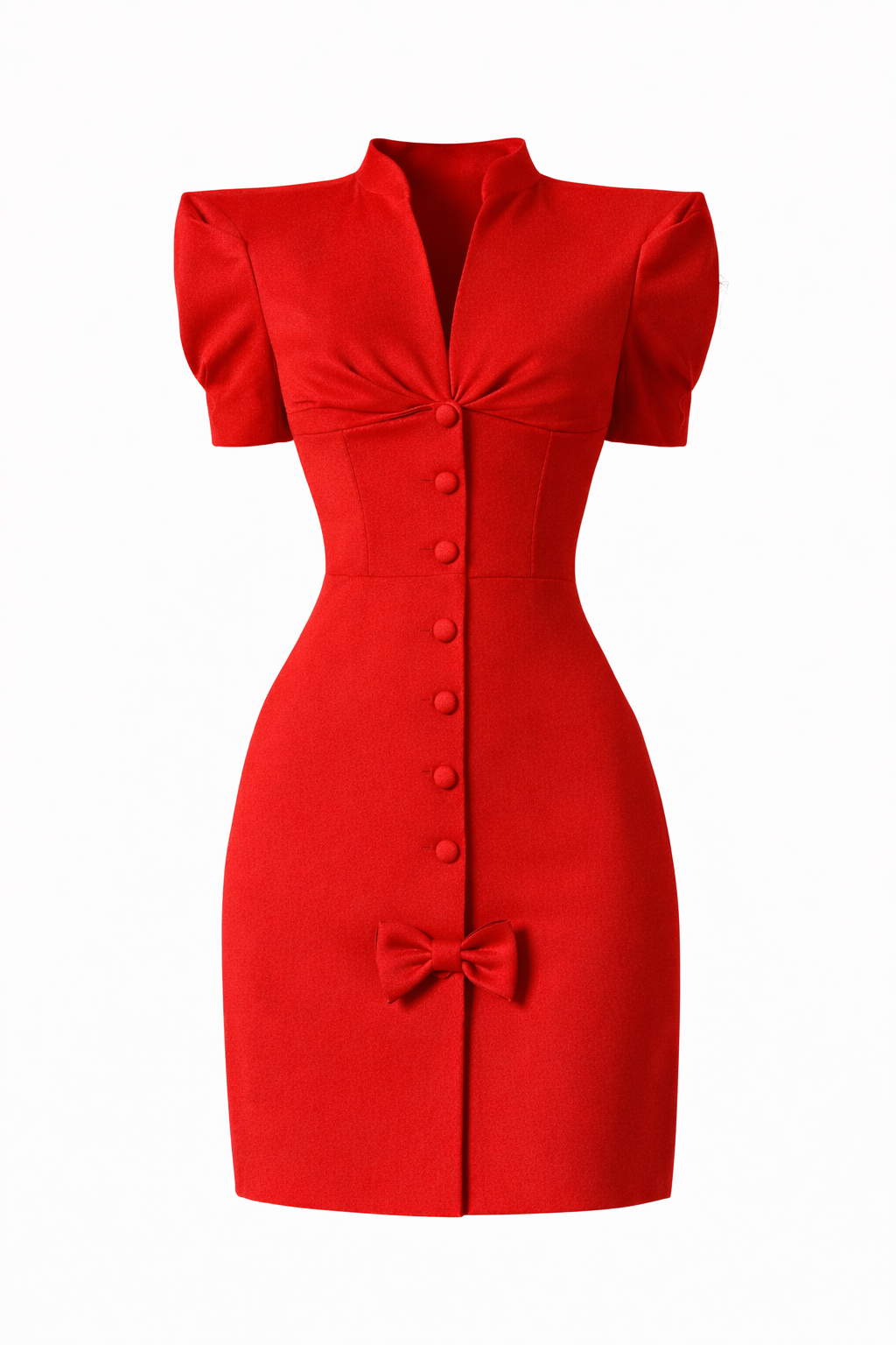 Cette robe rouge au design structuré sublime la silhouette avec sa coupe ajustée et ses épaules délicatement dessinées. Les boutons frontaux et le nœud discret apportent une touche de féminité et de raffinement. Une pièce chic et intemporelle, idéale pour une soirée élégante ou un événement spécial.